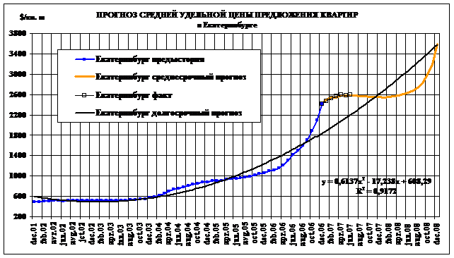Долгосрочный и среднесрочный прогноз цен предложения жилья в городах России (в номинальных долларовых ценах)