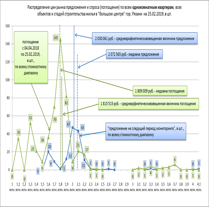 - ниже, в таблице, представлены данные, которые характеризуют рынок спроса и предложения на 25.02.2019. Указанные данные полезны для нового проектирования и создание нового бизнес-плана для Застройщиков.