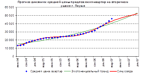 Сочетая общеэкономические тенденции и тенденции рынка недвижимости, можно заключить, что в Перми стадия подъема на рынке жилья продолжится, хотя возможны некоторые колебания других циклов развития рынка, их проявление будет связано, в основном, с замедлением темпов роста цен в отдельные периоды времени.[2]