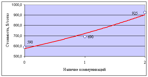 Рисунок 2. Влияние коммуникаций на величину стоимости участка.